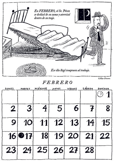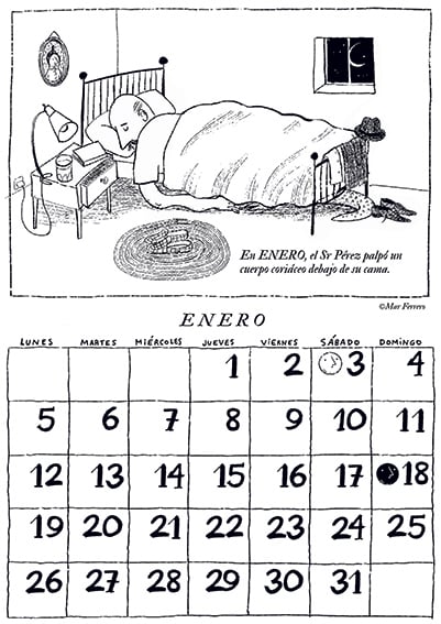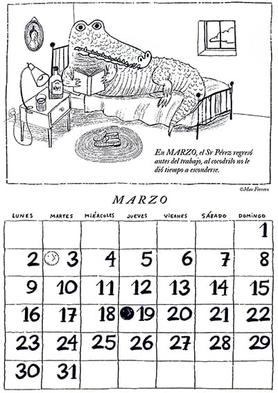 Este año he creado para el calendario un cuento completamente absurdo, sin pies ni cabeza, para reproducir en blanco y negro y colorear si te apetece.