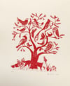 Serigrafía artesanal, hecha con mi equipo de andar por casa, mide 34x37cm, está hecha con tinta al agua sobre papel super-alfa de grabado ligeramente beige.